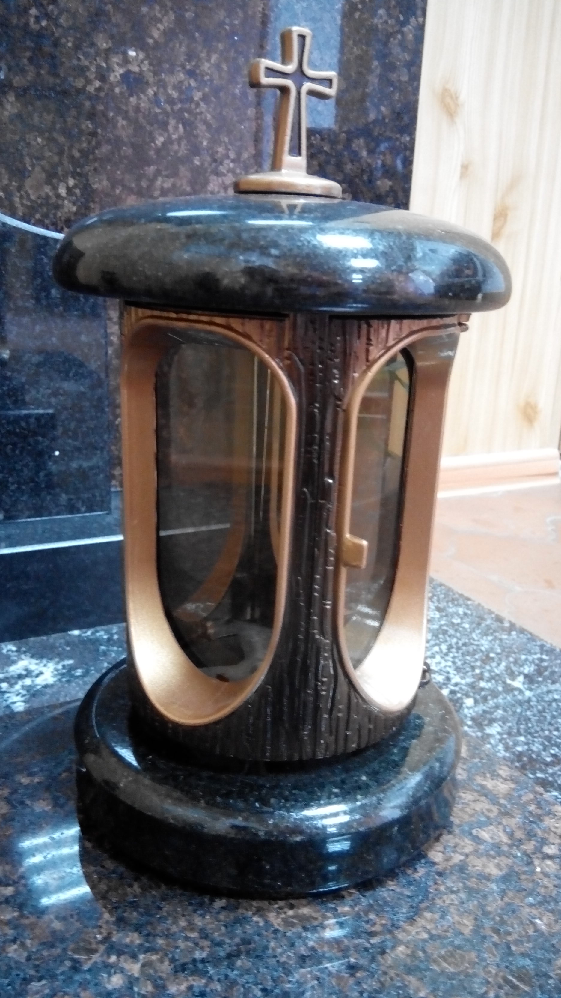 Лампады из гранита со стеклянными вставками, которые обеспечивают защиту фитилей и не допускают попадания влаги внутрь.